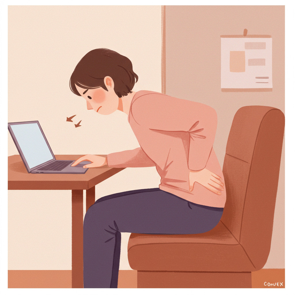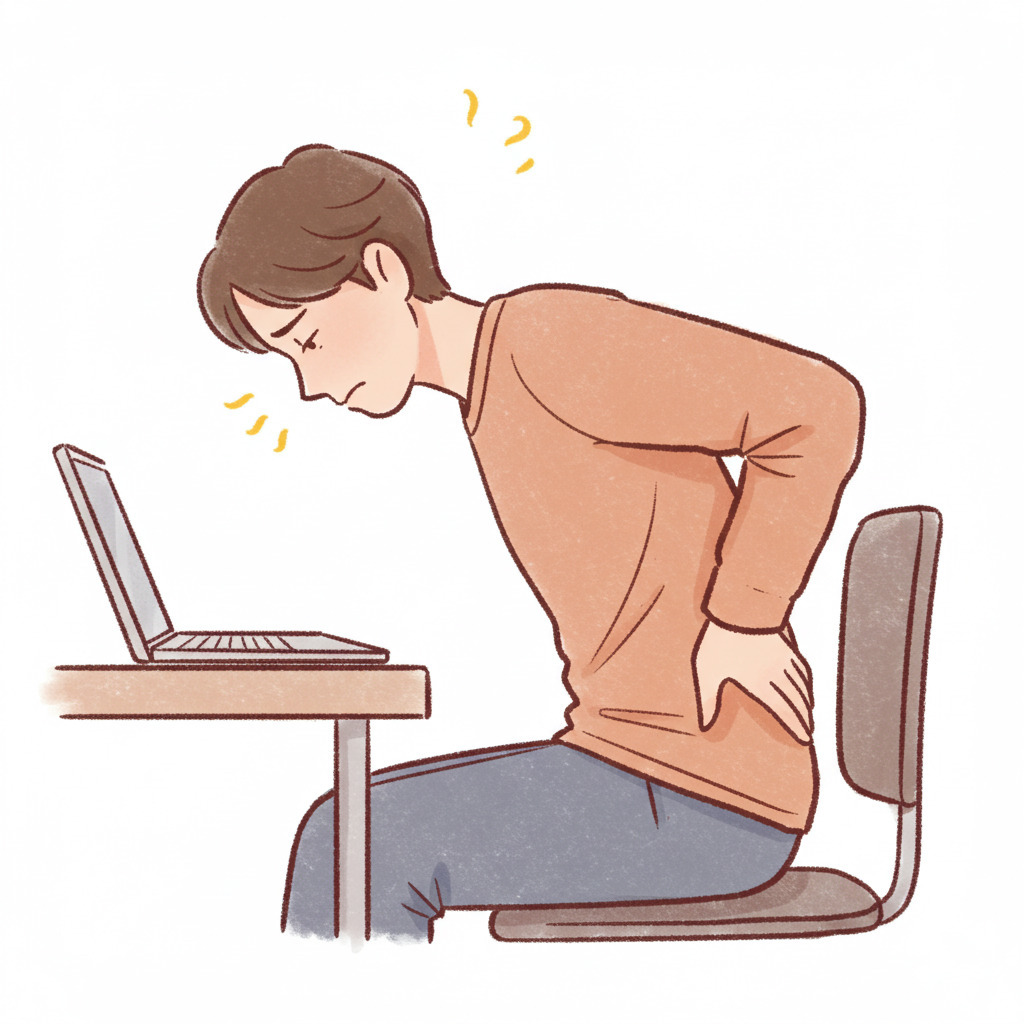 猫背や前かがみの姿勢 → 腰にかかる負担が増え、筋肉が疲労